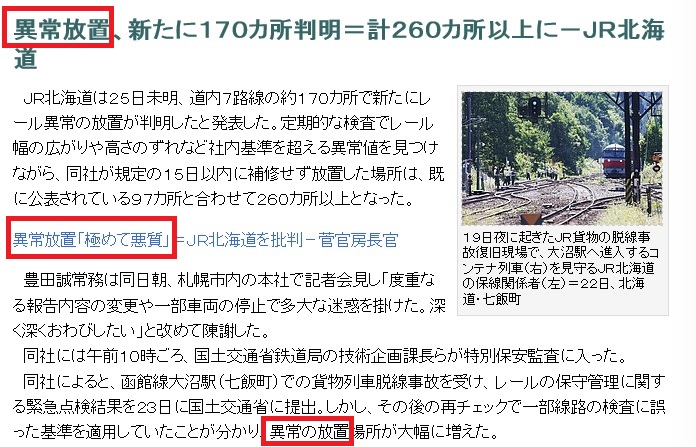 た、管内の線路の緊急点検で他に8カ所でも同様に放置していたことが判明、異常は計9カ所に上った。
