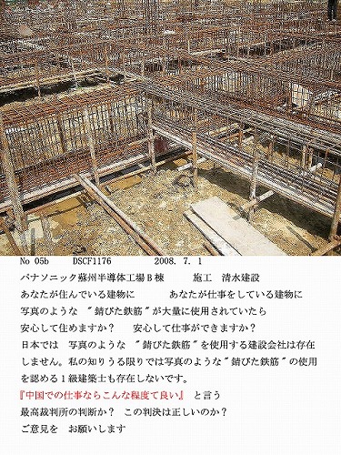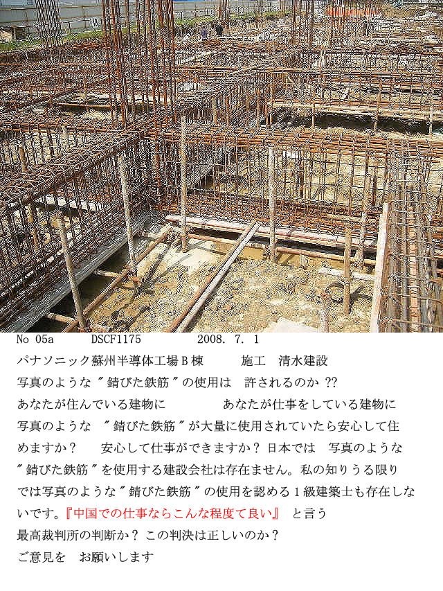 判决结果“在中国,即便使用如照片上那样的生锈钢筋,建筑物也是安全的”